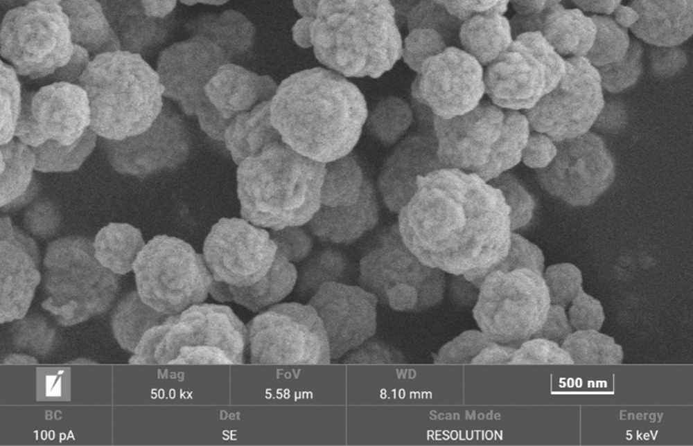 使用NKY® Nano PVP K30为分散剂、形貌调节剂,使用抗坏血酸(VC)为还原剂,采用硝酸银为前驱体,采用液相化学还原法,制备出亚微米球形银颗粒。